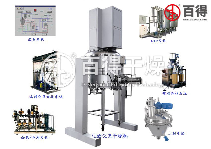 (2) 多種功能和型式的底部過濾器(平板式過濾洗滌干燥、錐形過濾洗滌干燥、單錐干燥);