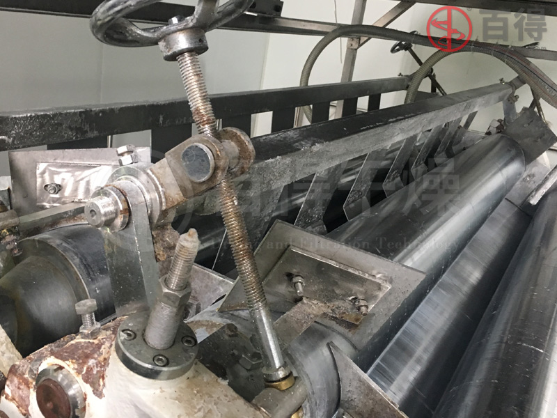 生產(chǎn)位置:zui小的間隙設(shè)置(幾絲),可將料漿鋪碾到主滾筒上。通常中間的小輥有帶埡口的轉(zhuǎn)移刮刀持續(xù)工作,這些刮刀的作用是將在間隙中的新鮮物料和存留的半糊化產(chǎn)品進(jìn)行混合,以達(dá)到zui佳產(chǎn)品品質(zhì) 。