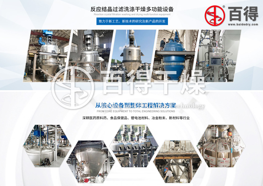 正是基于上述原因,常州百得進行了大量的設計研發(fā)工作,終于研制成功了新型錐形反應過濾干燥多功能機。多年來百得干燥一直專注于結晶過濾洗滌干燥裝備領域的研發(fā)、制造及服務,汲取國外先進技術的設計原理及數據分析之精華,并同多所科研院校共同深度開展產學研合作,錐形過濾洗滌干燥多功能設備歷經五代技術升級,突破傳統(tǒng)精制提純設備的限制,拓展了新型精制提純技術的工業(yè)應用。