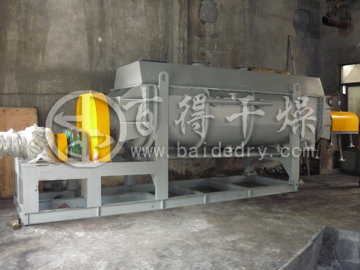 2、通入冷卻介質,如水、冷卻鹽水等即可用來冷卻。如:使用于純堿行業的槳葉式涼堿機,取代老式的空氣冷卻涼堿機,節省了能源及尾氣處理設備,降低了操作費用 ,還可用于鈦白粉、鎳鐵合金粉及各種粉粒狀物料的冷卻。在單臺機里可以將物料從1000℃冷卻到小于40℃。
