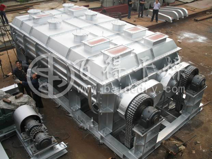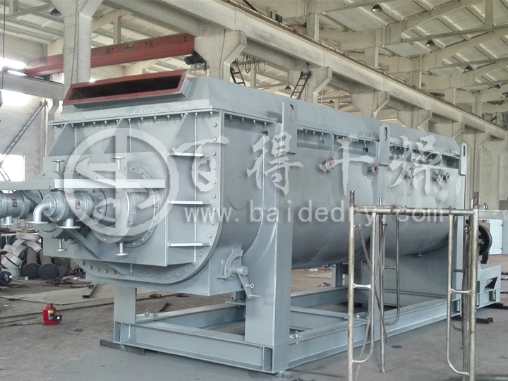 空心槳葉干燥機是一種以熱傳導為主的臥式攪拌型連續干燥設備。因攪拌葉片形似船槳,故稱槳葉干燥機,國外也稱槽型干燥機或攪拌干燥機。設備干燥所需要的熱量依靠熱傳導間接加熱,因此干燥過程不需或只需少量氣體以帶走濕份。極大地減少了被氣流帶走的這部分熱量損失,提高了熱量利用率,是一種節能型干燥設備。 槳葉干燥機廣泛應用于石油化工、化工、冶金、食品、醫藥、農藥等行業中粉狀、粒狀、濾餅狀、漿液狀物料的干燥。