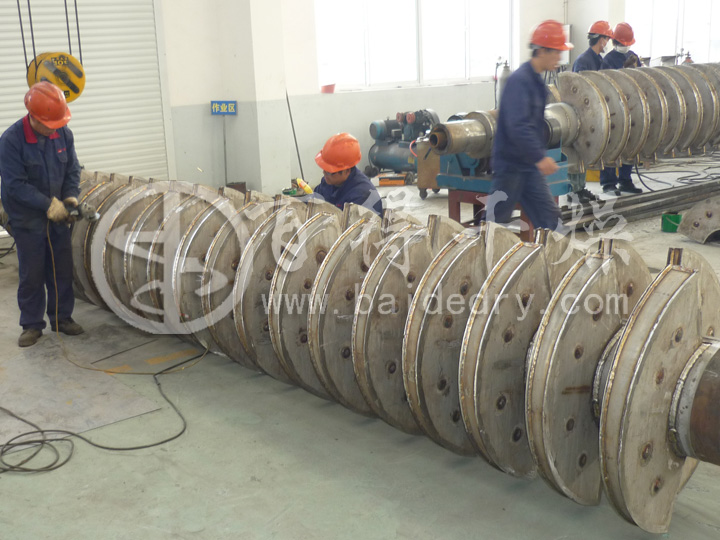 2、設備結構緊湊,裝置占地面積小。干化所需熱量主要是由密集地排列在空心軸上的許多空心槳葉壁面提供,而夾套壁面的傳熱量只占少部分。所以單位體積設備的傳熱面大,可節省設備占地面積,減少基建投資;