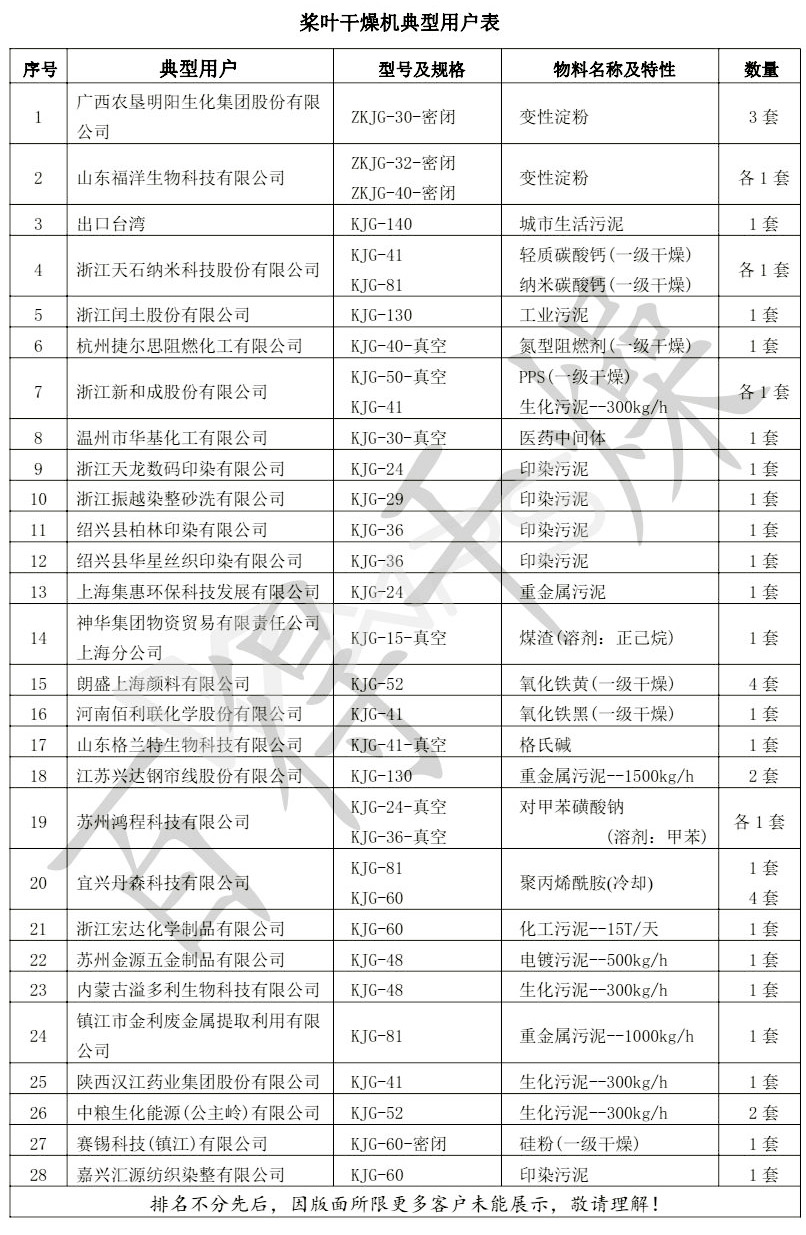 空心槳葉干燥機 應用范圍