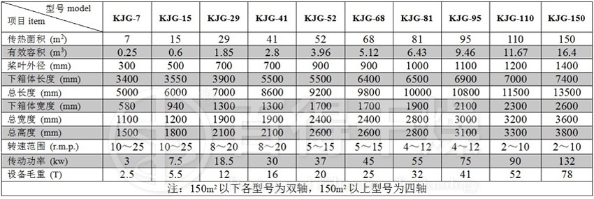 空心槳葉干燥機 技術參數表