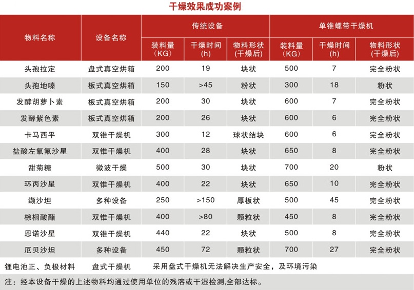 ① 物料在生產中處理的原料粗品大都具有熱敏性,所以在干燥的過程中往往出現物料結塊,這就需要盡量縮短干燥時間,提高干燥效率。