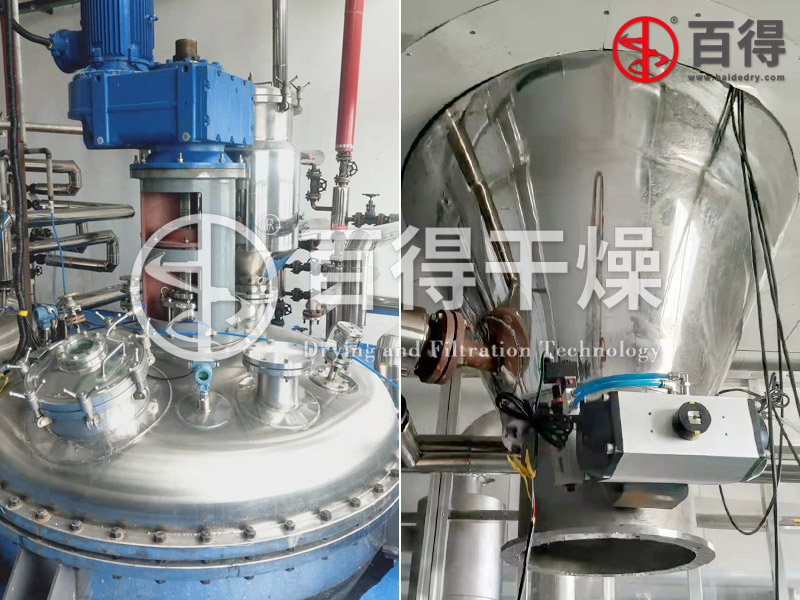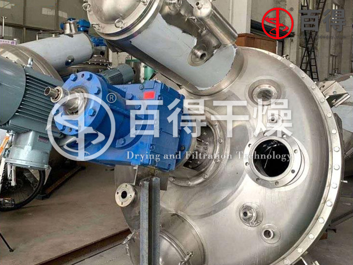 ② 帶加熱夾套的下錐體:內表面光滑、無死角,可以使物料得到充分干燥。出料時借助攪拌器的旋轉,使出料迅速、干凈。