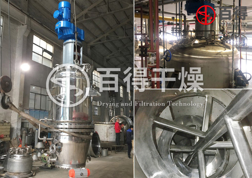 (6) 可用于反應(yīng)、過(guò)濾、干燥三種操作,使三個(gè)單元設(shè)備的作用在這一臺(tái)設(shè)備上完成,從而使設(shè)備成本、占地面積、勞動(dòng)強(qiáng)度、能耗等都大大降低。