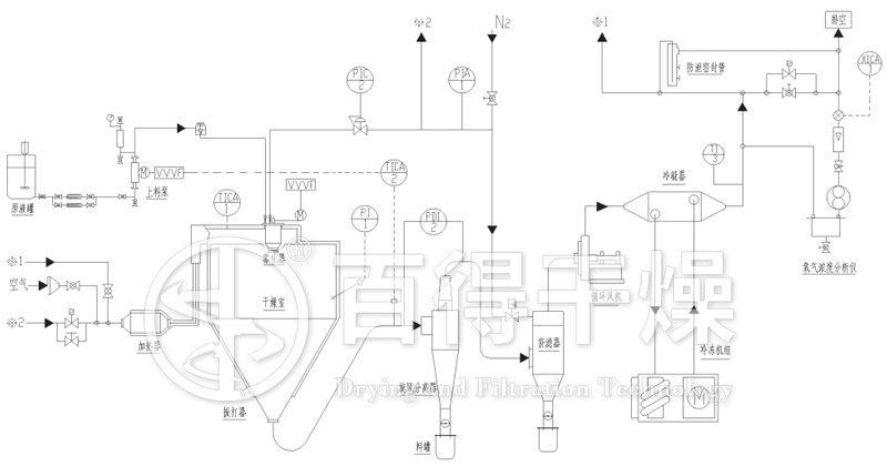 閉式循環(huán)噴霧造粒干燥機(jī)是溶劑類料漿干燥的專用設(shè)備,由氮?dú)?或其他惰性氣體)作為干燥循環(huán)氣體,干燥過程物料可以防止氧化、同時(shí)可以回收。氮?dú)庋h(huán)噴霧干燥機(jī)一般用于甲苯、乙醇、丙酮、己烷等類制備料漿的粉體干燥,設(shè)備采用防爆設(shè)計(jì),干燥過程安全環(huán)保。
