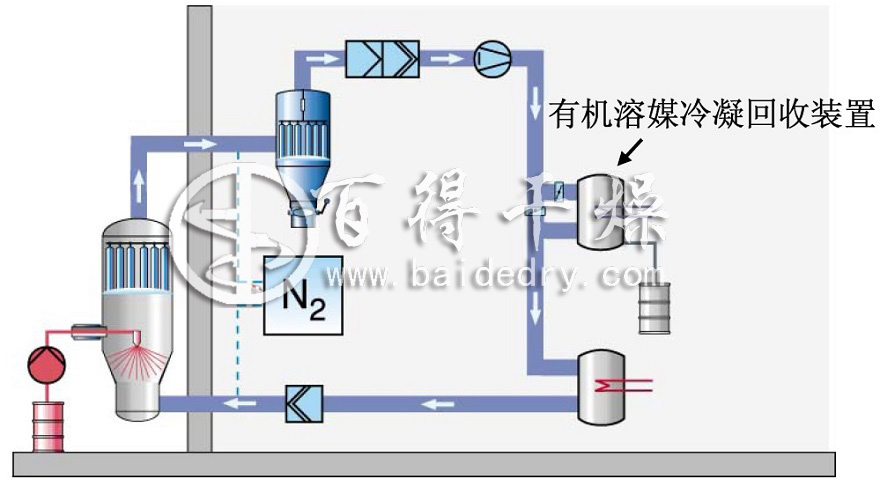 閉路循環沸騰干燥機是有機溶劑類粉體干燥的專用設備。該機組是由氮氣(或其他惰性氣體)作為干燥循環氣體,干燥過程物料可以防止氧化、同時有機溶劑可以回收。密閉沸騰干燥機一般用于乙醇、丙酮、己烷等有機溶劑類的粉體干燥,設備采用防爆設計,干燥過程安全環保。