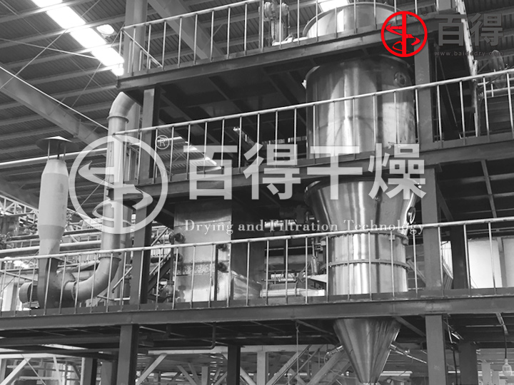 (4) 一般來說,在一定條件下,操作溫度愈高,設備熱效率也就愈高。但通過對卡拉膠干燥機理的研究發現,其分子內溶劑較多,干燥速率曲線幾乎沒有平臺區,且有一個變色敏感區,通過長期實踐發現,干燥溫度zui佳范圍為80~100℃。